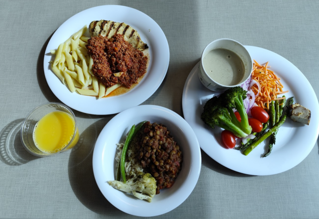 IMGでは日替わりのビュッフェ形式で、栄養満点の食事が食べ放題です。