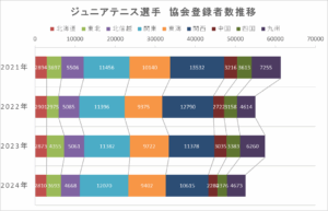 - 有明ジュニアテニスアカデミー… 成長人数が多く、合計・平均ともにポイント上積みが大きい。男子のベスト3が牽引。
