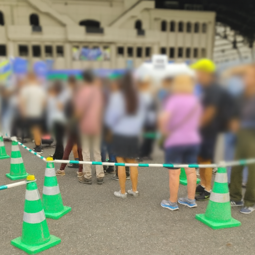 上図はチケット待ちの列ですが、当日販売終了のアナウンスが10時30分ごろに流れると、そこで7割程度は列を離れ、一部が残りました。この後、当日リセールにより販売余地がでれば、その都度買えるようになります。渋滞で言えば、事故渋滞直後など、交通止めに近いの完全ストップの状態。