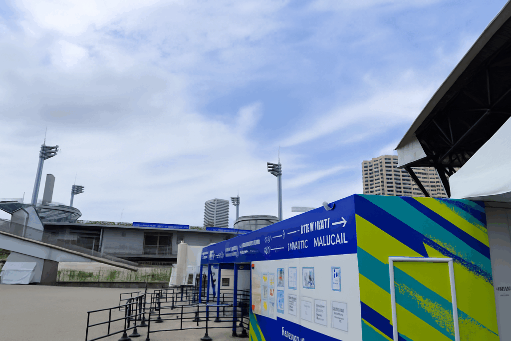 コロシアムの南側、イベントブースでもあります。現地を知る方は上記画像でわかると思いますが、国際展示場から来る際に通る道です。