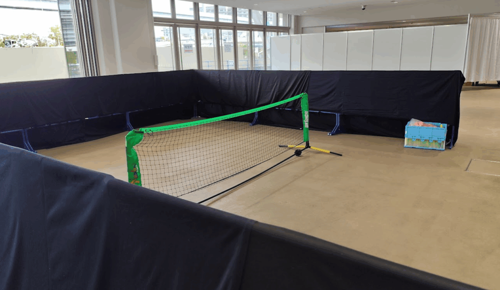 テニピン | 現地でコートを準備(週末?) | 東ブース(正面入り口と逆側) |