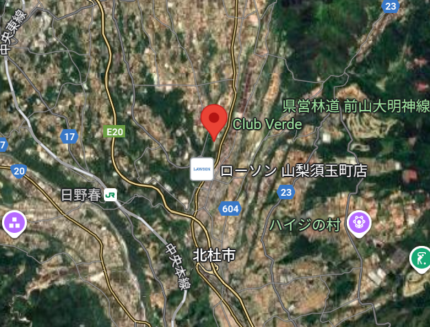 クラブヴェルデは上図の通り、山梨の自然の中にあります。これだけ聞くと最近は熊が怖いですが、より広域で見るとその外側は平地に囲まれ、過度な心配は不要です。