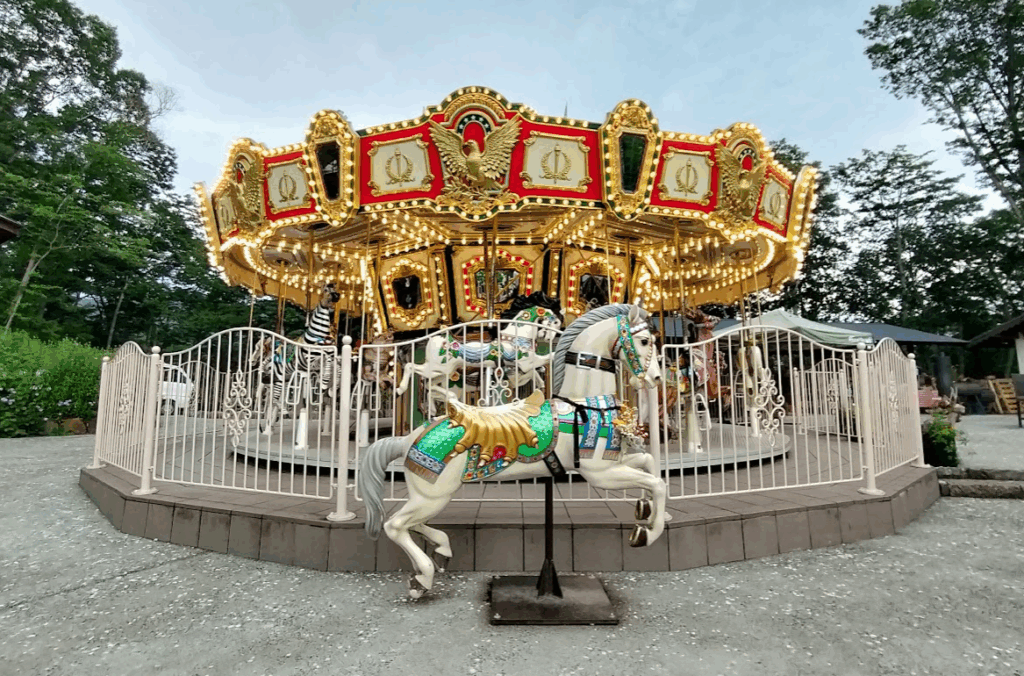 自然の中におしゃれなお店が点在し、メリーゴーランド、宿泊施設もあります。