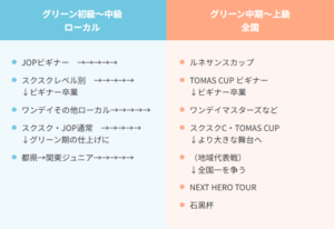 26から27インチにかけて急に怪我の比率が増えます。このため、25インチとグリーンボールの組み合わせは長い練習時間にも耐えやすく、小学校中学年のジュニア選手に非常に合っています。