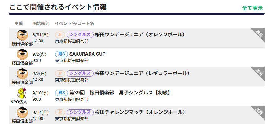 桜田チャレンジマッチ | レッド | 10点先取で回転 | 三か月に一度程度(日曜午後) | 2時間程度(うち試合1.5時間) |