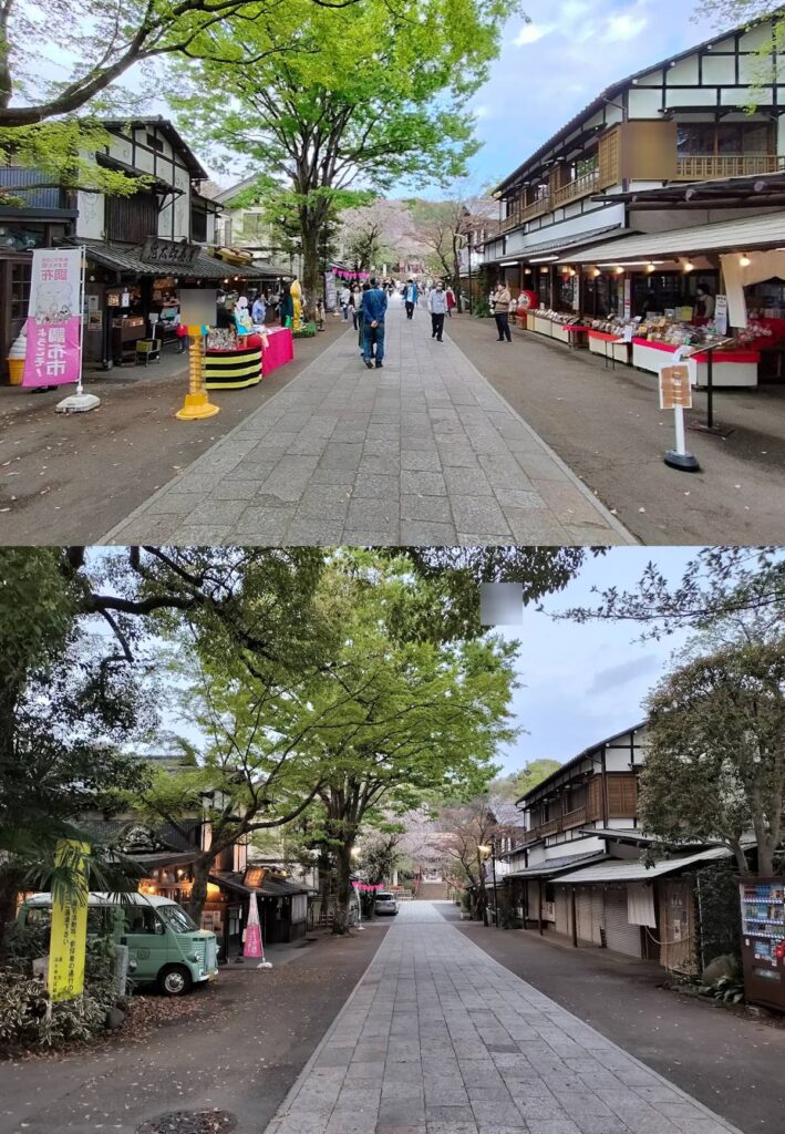 深大寺通りは週末昼間、非常に賑わいます。初めて行く際は早めに行って、食べ歩きをしたり、雰囲気を味わうのも良いでしょう。同じ日の昼間と夕方の違いはこちら↓